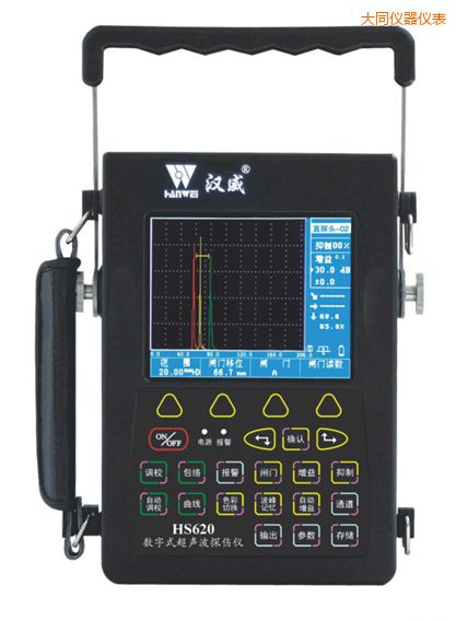 HS620數(shù)字式超聲波檢測(cè)儀 技術(shù)參數(shù): 數(shù)字硬件采樣頻率:10bit/200MHz 脈沖強(qiáng)度:600V 阻抗匹配:200Ω、500Ω二檔可選 工作方式:?jiǎn)尉絺、雙晶探傷 掃描范圍:零界面入射~ 12000mm鋼縱波 重復(fù)頻率:15Hz、30Hz、60Hz、100Hz、200Hz、300Hz、400Hz、500Hz、400Hz 檢波方式:全檢波、正、負(fù)檢波、射頻波顯示 工作頻率:(0.5-15/0.5-4/2-8)MHz 衰減器精度:< ±1dB/12dB 增益調(diào)節(jié):110dB(0.1dB、2dB、6dB步進(jìn),c掃描超聲波探傷儀,全自動(dòng)調(diào)節(jié)) 聲速范圍:(100 ~ 20000)m/s 動(dòng)態(tài)范圍:≥ 30dB 垂直線性誤差:≤ 3% 水平線性誤差:≤ 0.1% 分辨力:>40dB(5N14) 靈敏度余量:>60dB(深200mmΦ2平底孔) 數(shù)字抑制:(0 ~ 80)%,不影響線性與增益 電源、電壓:直流(DC)7.2V±10%;交流(AC)220V±10% 工作時(shí)間:連續(xù)工作6小時(shí)以上(鋰電池供電) 環(huán)境溫度:(-10 ~ 40)℃(參考值) 相對(duì)濕度:(20 ~ 95)% RH 外型尺寸:205 x 138 x 65(mm)