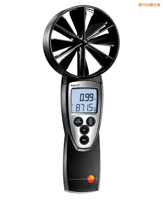 testo 417葉輪風(fēng)速儀 產(chǎn)品介紹:testo 417精密型風(fēng)速儀,配置一體式葉輪風(fēng)速/溫度探頭,真風(fēng)速計(jì)在行動(dòng),直徑100mm,測量風(fēng)速、風(fēng)量和溫度。直接顯示體積流量。只需輸入管道的截面積,風(fēng)速儀工作原理,即可精確計(jì)算出流量。 可以快速切換至當(dāng)前的溫度讀數(shù)。此外,還可以顯示氣流的方向 。儀器帶時(shí)間段和多點(diǎn)平均值計(jì)算功能,塔吊風(fēng)速儀,計(jì)算風(fēng)量、風(fēng)速和溫度的平均值。用戶可選配風(fēng)量罩,超聲風(fēng)速計(jì),有助于更好地檢測格柵出風(fēng)口和風(fēng)閥處的風(fēng)量。 儀器可以顯示最大值/最小值。使用保持鍵,熱線風(fēng)速儀價(jià)格,可以保持當(dāng)前讀數(shù)。 testo 417葉輪風(fēng)速儀 優(yōu)點(diǎn):· 識別氣流的流向· 測量溫度、風(fēng)速和風(fēng)量 · 時(shí)間段/多點(diǎn)平均值計(jì)算 · 顯示最大值/最小值 · 保持鍵,手持風(fēng)速儀,保持讀數(shù) · 顯示屏帶背光燈 · 自動(dòng)關(guān)機(jī)功能 · 100mm直徑的一體式葉輪 testo 417葉輪風(fēng)速儀 附件 - testo 417