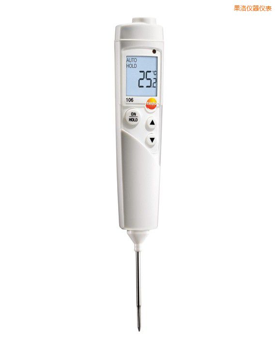 testo 106 具有響應(yīng)快、精度高的特點(diǎn)。適用于食品生產(chǎn)車間、餐飲、酒店、工業(yè)廚房、超級(jí)市場等的快速測量。該款溫度儀外形小巧、經(jīng)濟(jì)實(shí)用。配備的探頭極細(xì)而堅(jiān)固,實(shí)驗(yàn)室溫度計(jì),非常適合測量小尺寸食品的中心溫度。