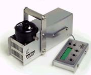 露點(diǎn)溫度測量時(shí),便攜露點(diǎn)儀,將需要測量的氣體送入鏡面部分。 為流量計(jì)組合型氣泵。