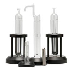 · 純度極高,不確定度極低 · 多種尺寸,多種選擇 · 優(yōu)異的同位素水平 · 特殊應(yīng)用的小型水三相點 水三相點(TPW)是唯一一個同時被熱力學(xué)溫標和國際溫標定義的溫度固定點。熱力學(xué)溫度的單位,,開爾文,被定義為水三相點熱力學(xué)溫度的1/273.16。它也是1990年國際溫標(ITS-90)的定義固定點。 因此水三相點溫度是最重要、最準確、最易于使用的溫度標準。福祿克的水三相點瓶以小于0.0001℃的擴展不確定度實現(xiàn)0.01℃溫度。如果您擁有標準鉑電阻溫度計SPRT,就必須要有一個高質(zhì)量的水三相點瓶。 純度極高,不確定度極低 福祿克公司的水三相點瓶內(nèi)是經(jīng)過精心多次蒸餾的海洋水,并經(jīng)過嚴格抽真空和密封,其同位素幾乎等同于國際標準——“維也納標準平均海水”或“VSMOW”。由于水雜質(zhì)引起的潛在誤差甚至高于同位素產(chǎn)生的誤差。福祿克的容器經(jīng)過多次蒸餾處理,并利用特殊技術(shù)來維持水的純度。尤其是我們基標準專家可以直接將石英容器連接到玻璃蒸餾系統(tǒng),而無需采用可能會引起污染的對接硬件。福祿克的絕大多數(shù)水三相點瓶的外殼為硼硅玻璃或石英。玻璃比石英要便宜,但也更容易滲透。隨著時間的推移,會有雜質(zhì)滲透。研究表明,玻璃容器每年的漂移通常為 0.000006℃,而石英容器則小得多,因此需要根據(jù)具體情況來選擇。 多種尺寸,多種選擇 福祿克的水三相點瓶具有4種常用的尺寸。5901A、5901C和 5901D均提供石英或玻璃外殼,并且提供265 mm的插入深度。這些型號之間的主要不同(除5901A上的支架外)是探頭井的內(nèi)部直徑。5901A容器包括一個支架,可作為手柄、掛鉤,或者作為 McLeod真空計來證明在容器內(nèi)殘留了多少空氣。 優(yōu)異的同位素水平 大多數(shù)水中的氧原子主要是由8個質(zhì)子和和8個中子(16O)組成的,但是一些氧原子額外多一個( 17O)或兩個(18O)中子。相類似, 水中的氫原子通常僅含有一個質(zhì)子(1H), 但是有時還會( 2H),, 從而形成“ 重水”。這些同位素以不同的比例共存于海洋水、極化水和大陸水中,其中海洋水是最重的。 ITS-90溫標建議使用“具有與海水同位素基本一致的”水制造水三相點瓶。研究表明,同位素引起的TPW誤差最大可達 0.00025℃。在福祿克容器中,由于偏離VSMOW而產(chǎn)生的不確定度低于0.000007℃。也就是僅有7uK! 特殊應(yīng)用的小型水三相點 眾所周知,SPRT價格非常昂貴。 SPRT使用一段時間后會產(chǎn)生漂移,如果發(fā)現(xiàn)其產(chǎn)生的漂移量超過正常范圍并及時退火,,仍能夠恢復(fù)其正常性能。據(jù)統(tǒng)計,永久性損壞的SPRT中有40%是由于漂移過量未及時退火而造成的。因此,及時監(jiān)測SPRT的漂移量是十分必要的。福祿克公司提供的小型水三相點可以方便快捷地檢查SPRT在水三相點的漂移量,幫助您判斷其是否超差,并及時采取措施,延長其使用壽命。數(shù)據(jù)證明,延長兩支到八支SPRT的使用壽命,就可收回購買小型水三相點的投資。